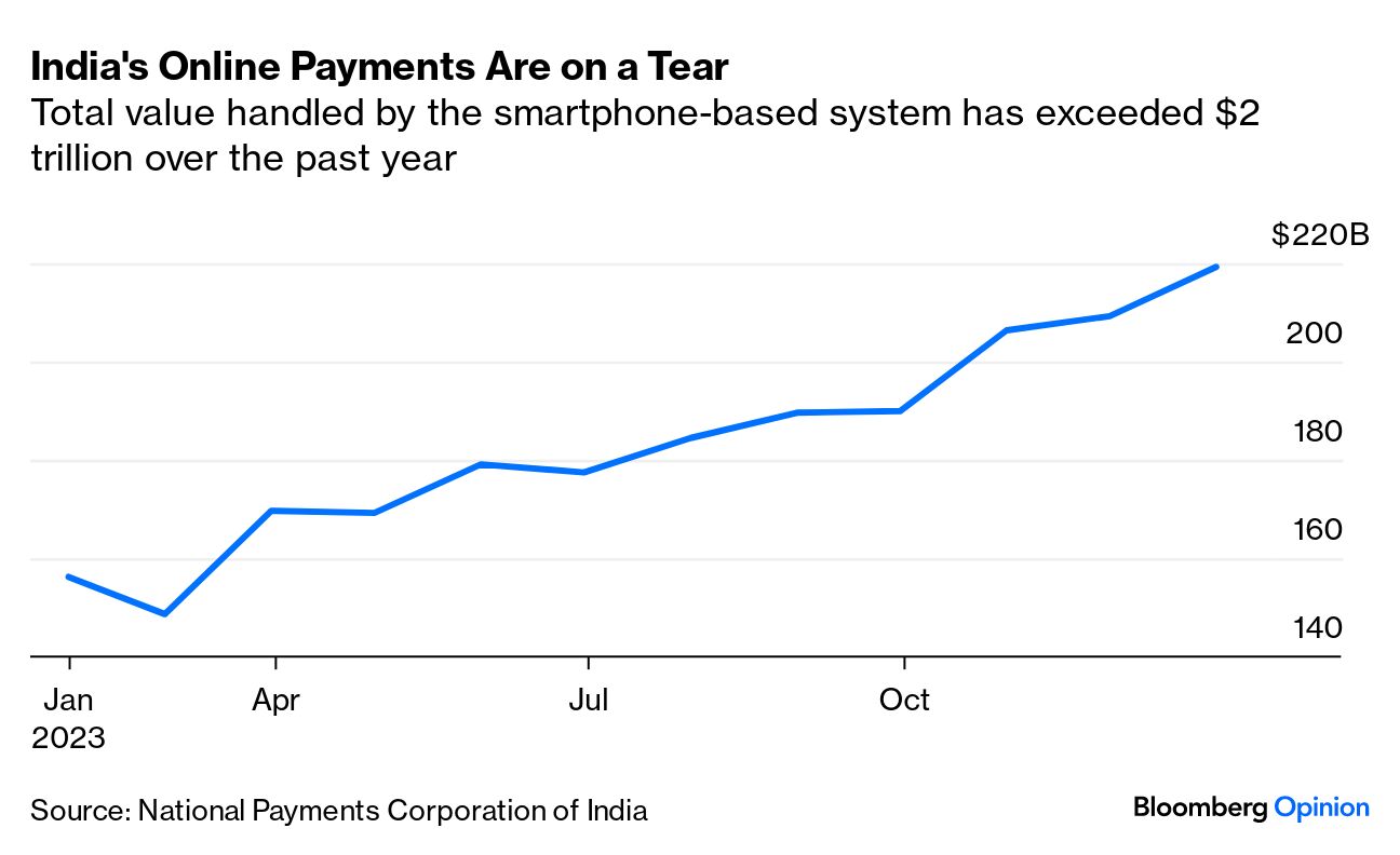 统一支付接口被3亿印度人用来立即结算账单。即使是最小的店主也接受UPI支付。Alphabet Inc.的Google推荐其开放架构给美联储作为FedNow的模板,这是去年在美国推出的新的银行间结算服务。到目前为止,UPI用户只能使用他们已经存放在银行的资金。但现在,放贷机构已经获得监管机构的批准来提供信用。任何扫描超过5000万商户的二维码的人都可以选择从信用额度支付,如果她碰巧有的话。
