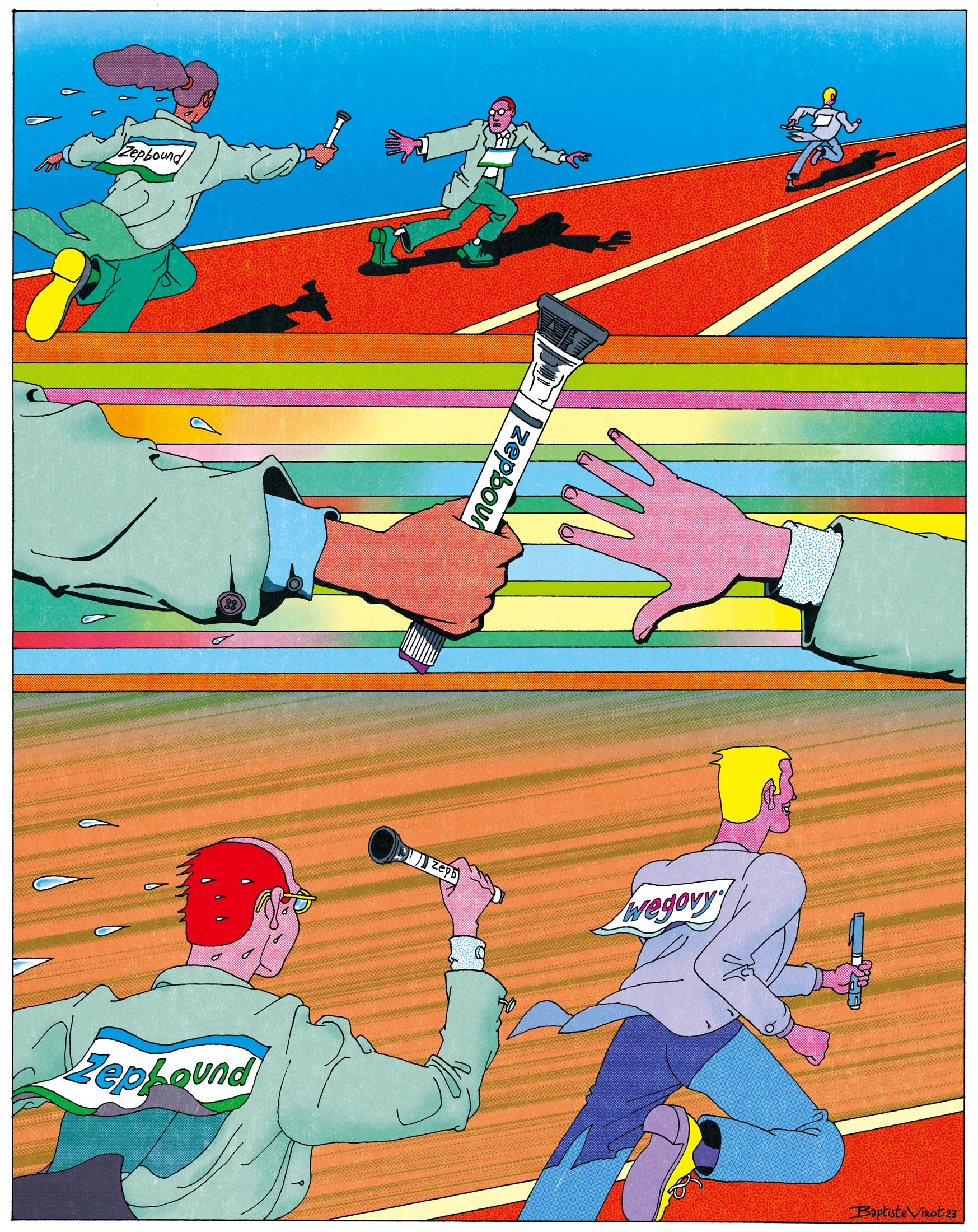 迪马奇离开后,礼来公司对于用于肥胖症的GLP-1药物的研究“完全停止了”,他说。在接下来的20年里,礼来公司的减肥药物“时而受到关注,时而不受关注”,自上世纪90年代以来一直在该公司工作的产品开发高级副总裁杰弗里·埃米克说。“我们只是认为它们不会那么有效。” 专利在2017年到期。次年,诺和公司推出了奥塞米匹(Ozempic)—GLP-1药物,虽然技术上是用于糖尿病,但却让减肥注射进入了文化意识。而专门用于肥胖症的维果维(Wegovy)迄今已为这家丹麦制药公司带来了约330亿美元的收入。
