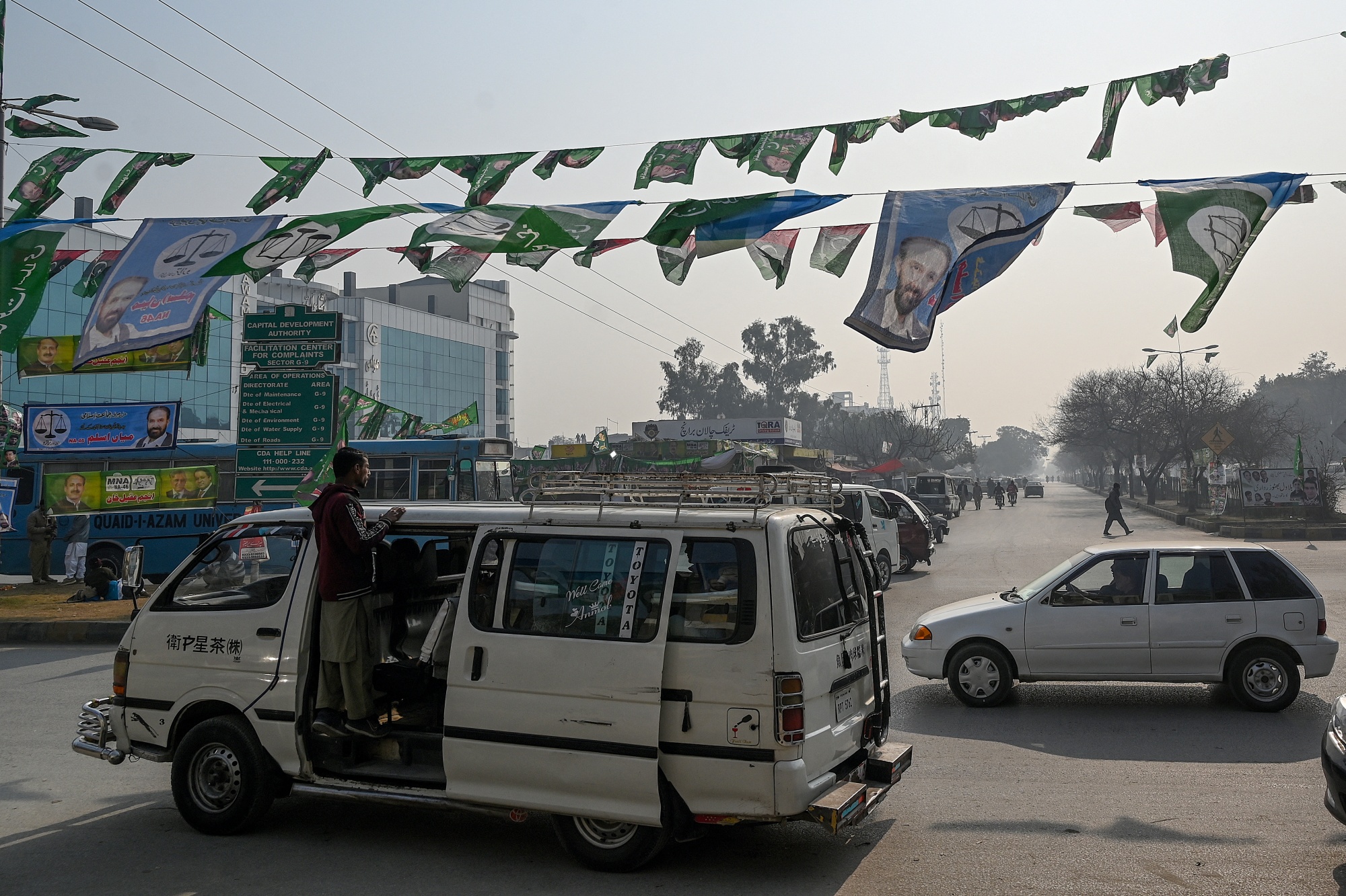 1月24日伊斯兰堡道路两旁的竞选旗帜。摄影师:Aamir Qureshi/AFP/Getty Images巴基斯坦近1.27亿合格选民将在下个月投票,国际货币基金组织的援助计划对该国产生重大影响。这个国家最受欢迎的领导人、曾经的板球运动员转型政治家伊姆兰·汗在2018年当选,但在2022年被罢黜,并在次年因腐败指控被捕。他仍然身陷囹圄,被禁止参与选举。他的对手纳瓦兹·谢里夫,曾三次担任总理,自去年结束自我流亡后取得了进展。