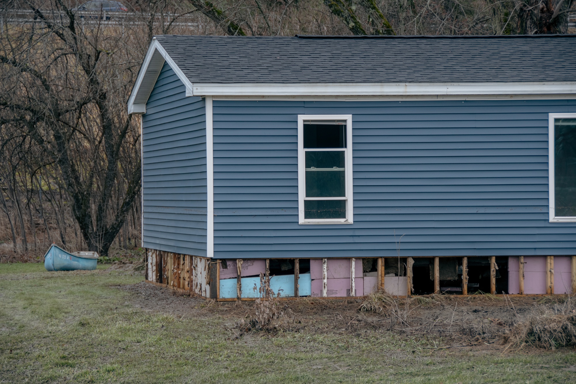 2023年12月,佛蒙特州沃特伯里遭受洪灾损坏的房屋。