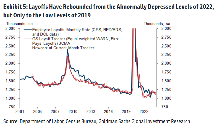 数据显示,与疫情重新开放期间雇主急于填补职位时的“异常低迷”水平相比,裁员已经增加。但是,高盛经济学家斯宾塞·希尔和曼努埃尔·阿贝卡西斯本周在一份备忘录中写道,情况只是回到了“2019年仍然较低的水平”。