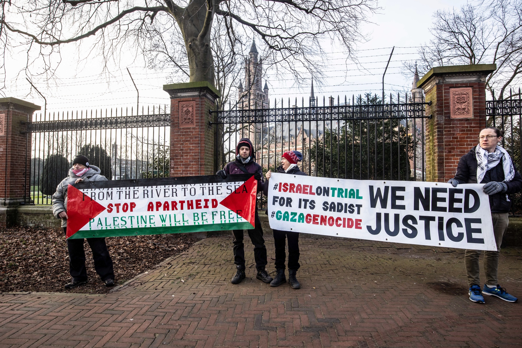 亲巴勒斯坦的示威者在1月11日在海牙国际法院附近。