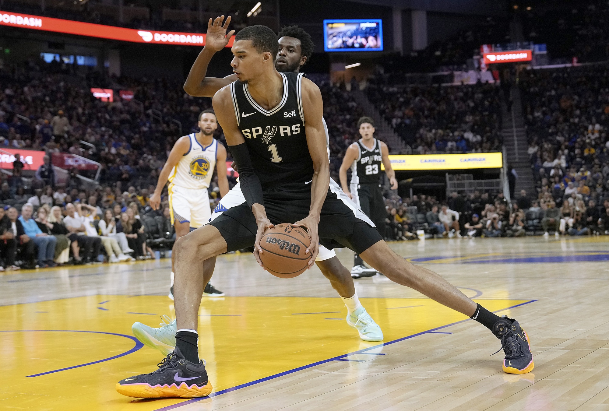 维克多·温班亚马(Victor Wembanyama)是NBA圣安东尼奥马刺队的新秀中锋,最近参加了比赛。