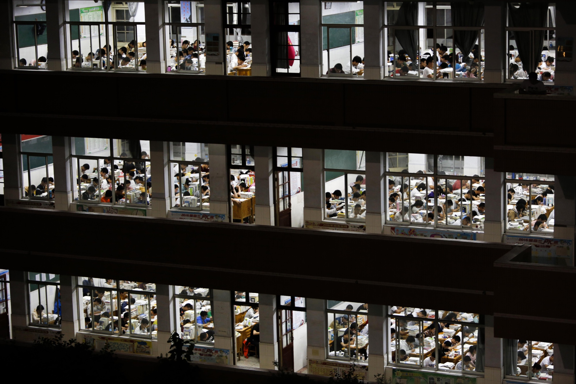 中国东部江苏省连云港市一所高中的高中生晚上自习,为了备战中国的高考。