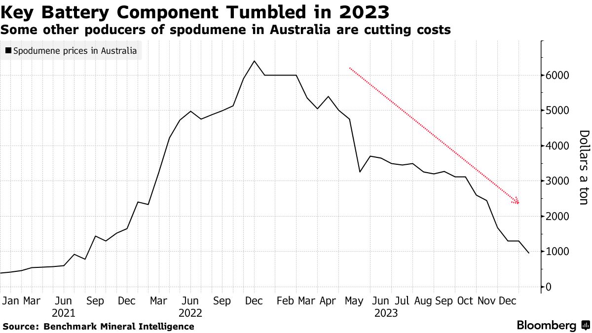 电池材料的暴跌已经颠覆了全球范围内的项目,即使对电动汽车前景的乐观情绪仍然存在。随着价格暴跌,矿工们正在实施产量削减并寻求控制成本。在澳大利亚,Pilbara Minerals Ltd.最近表示不太可能支付股息,Core Lithium Ltd.将裁员,一些镍矿将被停产。