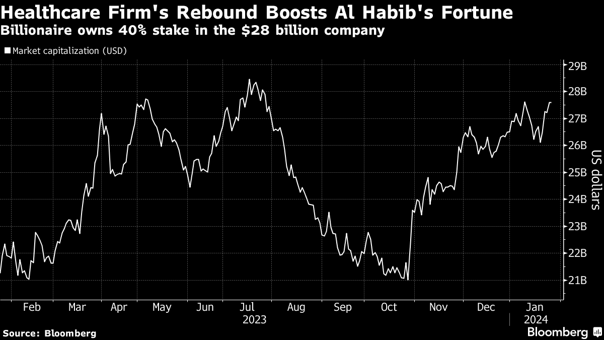 自去年10月触及一年来的最低点以来,Sulaiman Al Habib公司的股价已飙升30%。这使创立该公司并持有40%股份的Al Habib成为中东第三富有的非王室成员,根据彭博亿万富翁指数。