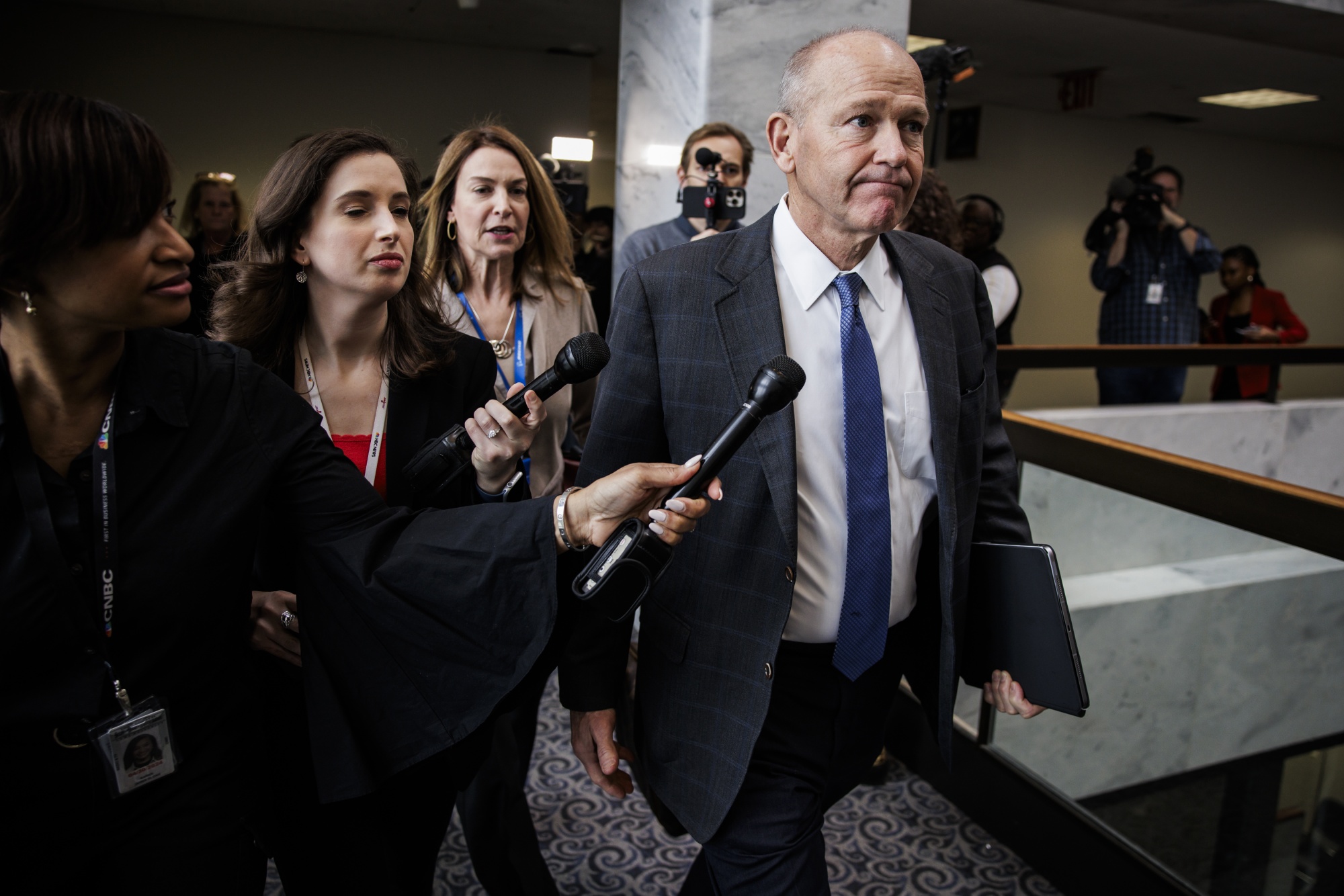 波音公司首席执行官戴夫·卡尔霍恩于1月24日在国会山出席。摄影师:塞缪尔·科伦/彭博社自从一架737 Max 9客机在飞行中失去外部面板以来的三周时间里,波音公司首席执行官戴夫·卡尔霍恩一直在进行自我批评之旅,向员工、愤怒的客户和国会山的议员们承认公司的缺点。