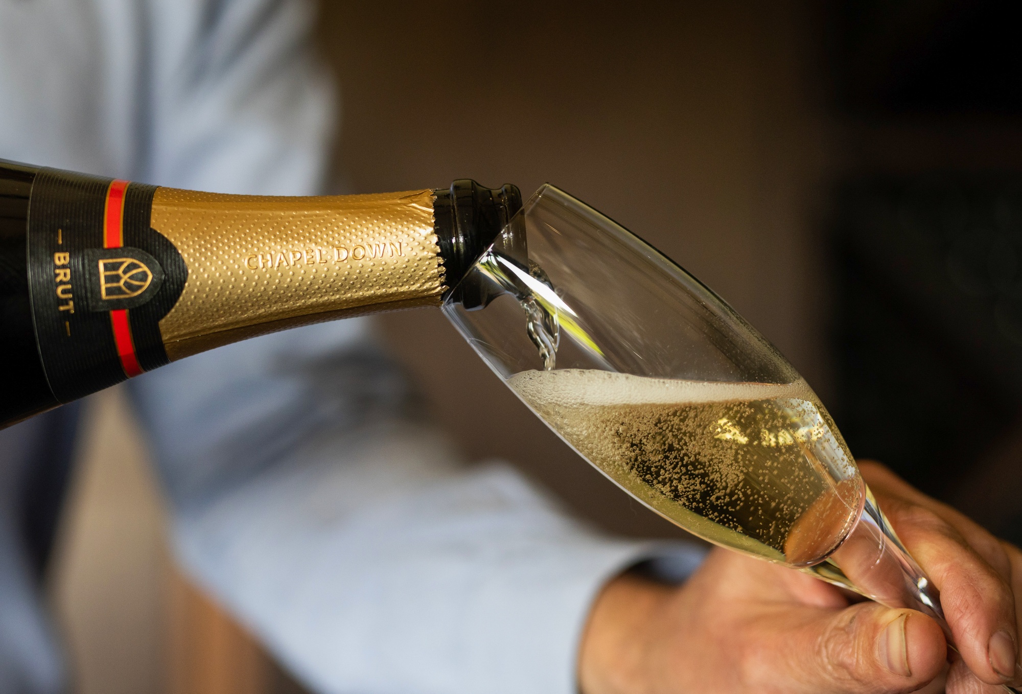 在英国坦特登的查珀尔唐集团葡萄园和酿酒厂里,一杯Brut起泡酒。