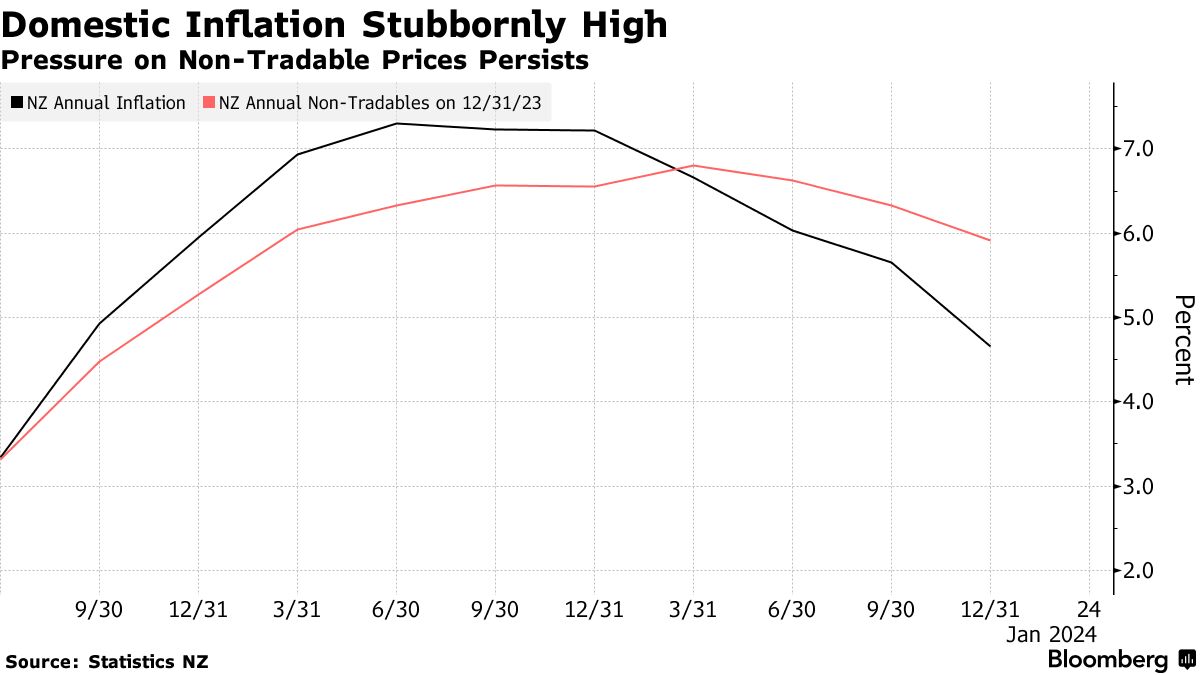 他说,尽管第四季度的总通胀率为4.7%,低于新西兰储备银行的5%预期,但非可交易品的通胀并没有像银行预期的那样放缓。