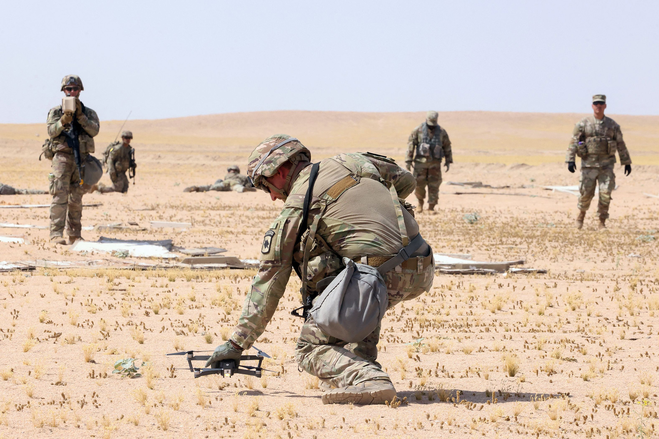 美国军事人员在科威特西北部乌代里的比尔林基地,于2023年5月10日。