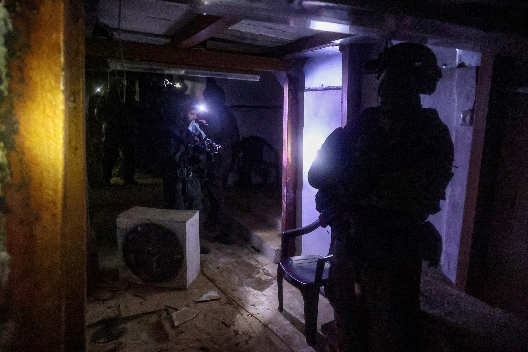 以色列士兵于1月27日在汗尤尼斯检查一条隧道。摄影师:Nicolas Garcia/AFP/Getty Images认为摧毁被美国和欧盟列为恐怖组织的哈马斯不会很快实现,这是以色列官员反对以释放人质换取长期或永久停火的一个原因。