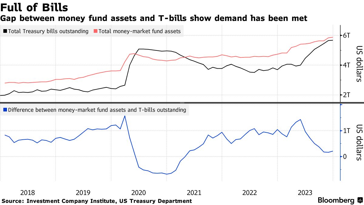 “今年账单的结构需求可能会减弱,”他在一份给客户的备忘录中写道。“我们预计货币基金余额将保持稳定或下降,而利率下调将减少账单相对隔夜回购的吸引力。”