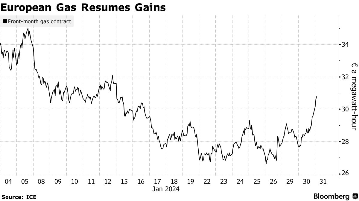 欧洲天然气价格上涨,随着中东紧张局势升级-彭博社
