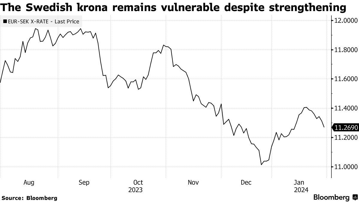 瑞典货币在脱离一些早期涨幅后仍然存在问题。自去年12月底至1月中旬的贬值“提醒我们克朗仍然容易受到攻击,”瑞典银行的策略师在一份报告中表示。