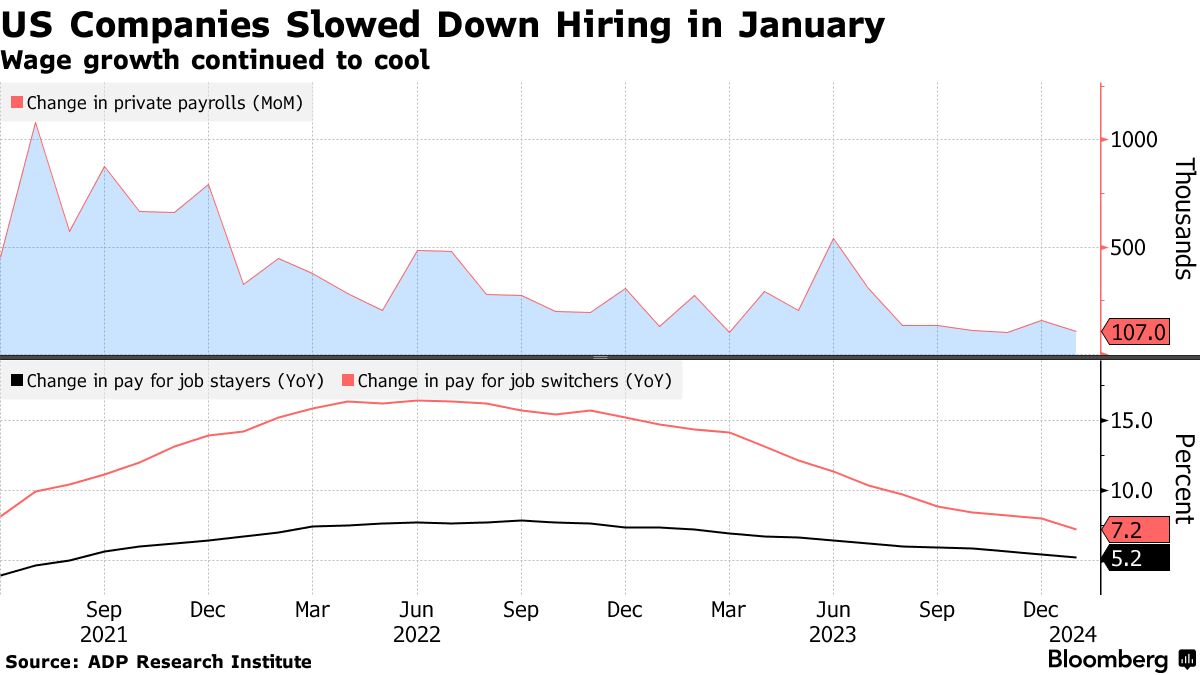 ADP 2024年1月就业报告:美国私营部门就业人数增长低于预期-彭博社