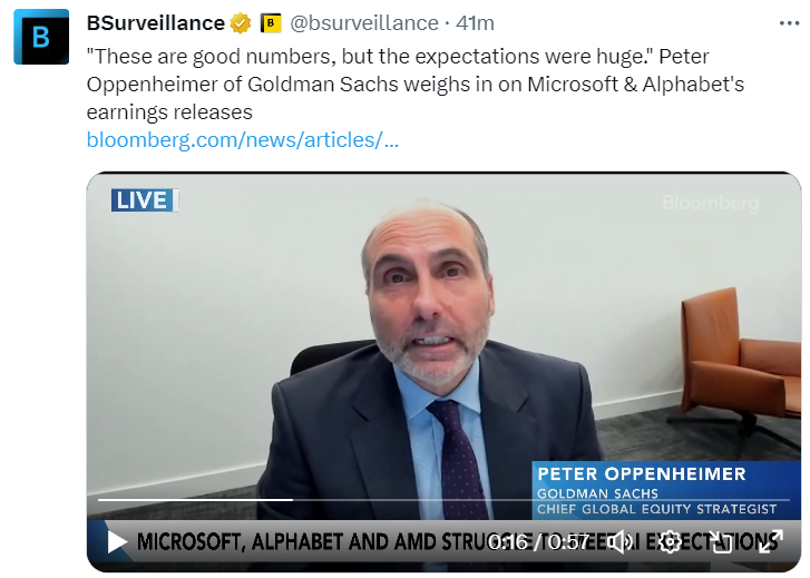 “这些数字并不差,”高盛的彼得·奥本海默说。“这些公司正在产生惊人的收入增长,它们处于一个强势位置。从市场的角度来看,短期内的上行空间可能会受到限制,因为市场已经定价了这些预期。”