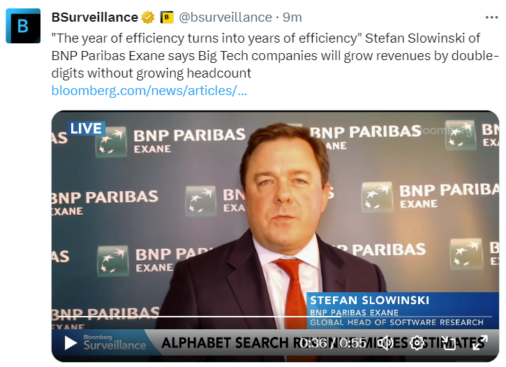他指出,华尔街对Alphabet的人工智能业务的业绩感到失望,但仍然显示出20%以上的销售增长。云企业业务也是如此。他说,投资者最终会重视这样一个事实,即这两个部门占所有企业收入的25%的增长。但显然现在还不是时候。