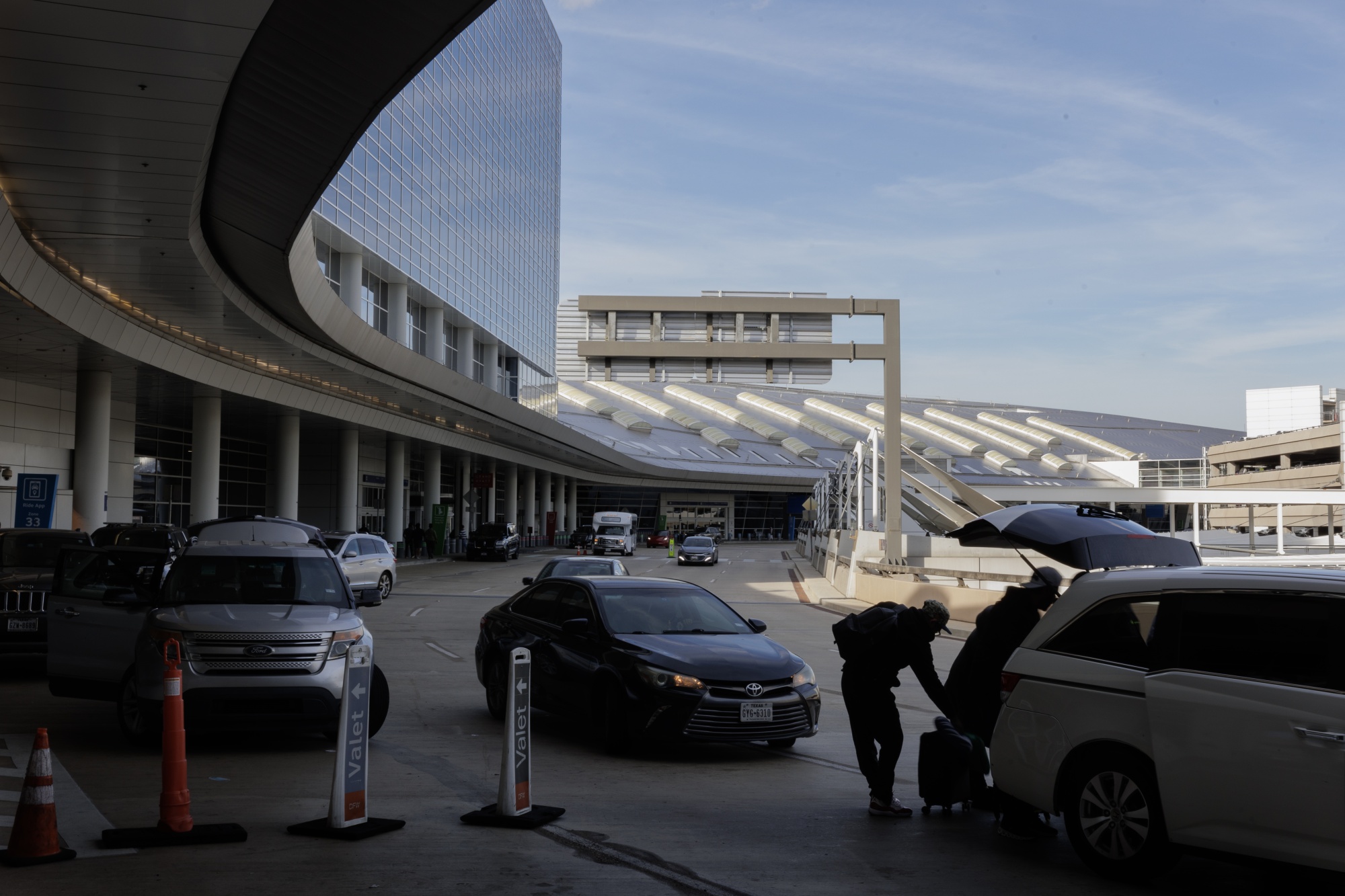 旅客抵达德克萨斯-沃斯堡国际机场。