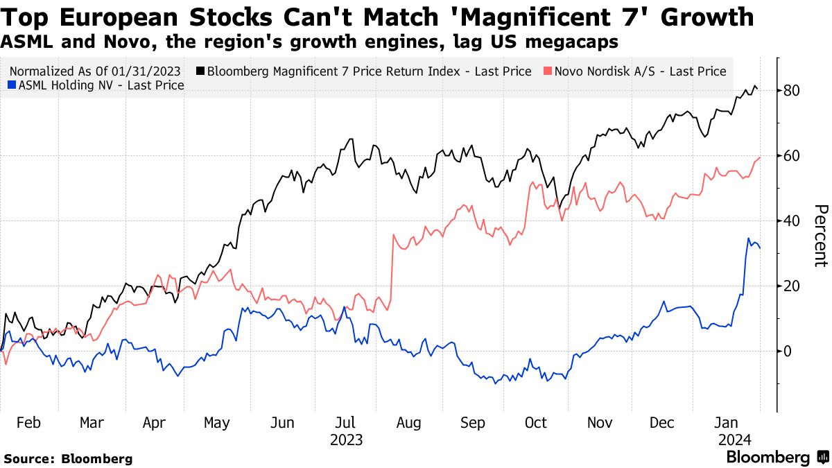 减肥药生产商诺和诺德公司取得了一个重要的里程碑,成为第二家市值达到5000亿美元的欧洲公司。然而,这只是又一个提醒,即使该地区蓬勃发展的医疗保健和科技股也无法与华尔街股票的增长相匹敌。