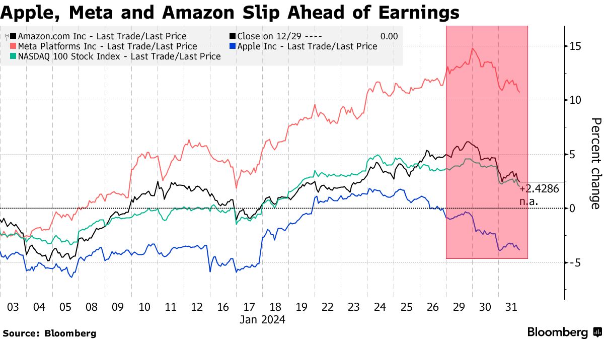 (AAPL)苹果,亚马逊(AMZN),Meta成果成为股市波动的焦点 - 彭博社