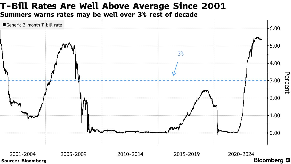 利率可能会一直保持在3%以上,劳伦斯·萨默斯警告称 - 彭博社