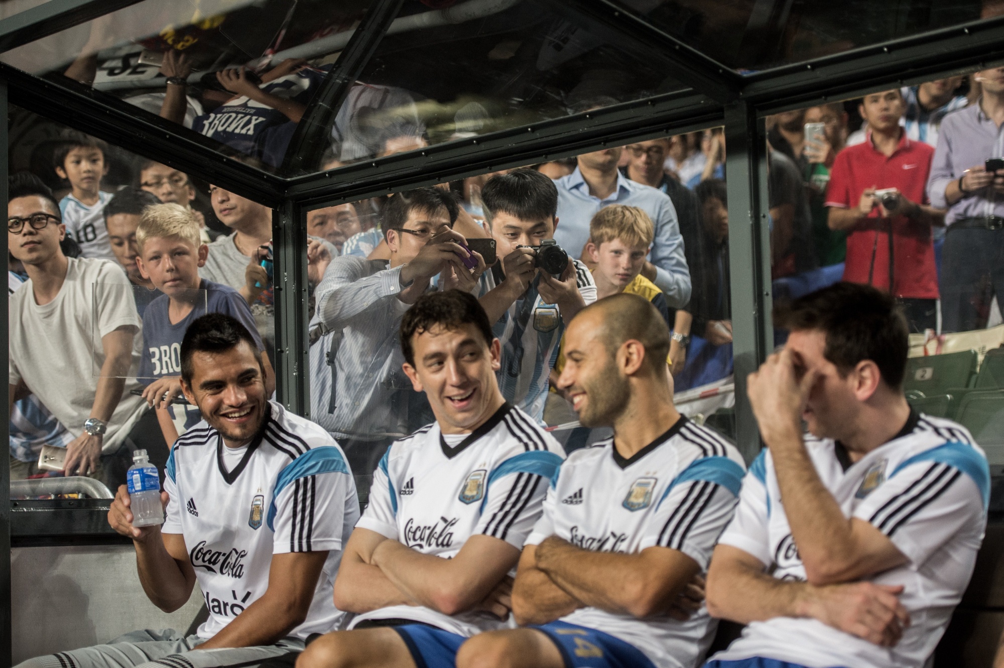 2014年阿根廷对阵香港友谊赛前的梅西球迷。摄影师:Anthony Wallace/AFP/Getty Images即使国际迈阿密队的精心安排的访问也并非完全顺利。在他们周五抵达后的尴尬时刻,球队和教练未能在机场的舞台上等待政府官员的问候,电视画面显示。相反,他们慢慢地走回飞机,尽管广播员催促他们返回。