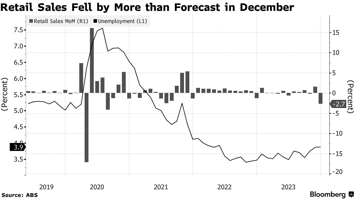 澳大利亚零售业12月销售额下滑,抹去了上个月消费者提前消费以抢购像黑色星期五一样的折扣所带来的大幅增长。