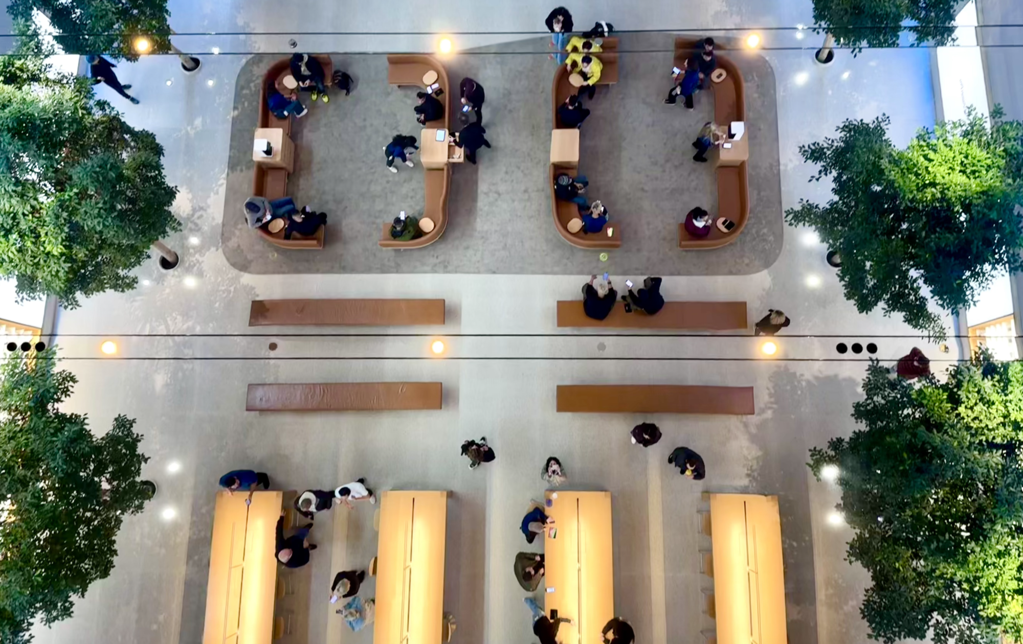 通过天花板的反射看到的 Vision Pro 试用区域。图片来源:Rebecca MulbergGrove 门店的零售员似乎对产品了解得很透彻。他们对试用过程很了解,并迅速回答了我的问题。特别是一位经理一直在关注我的试用,并帮助确保光线密封问题得到解决。