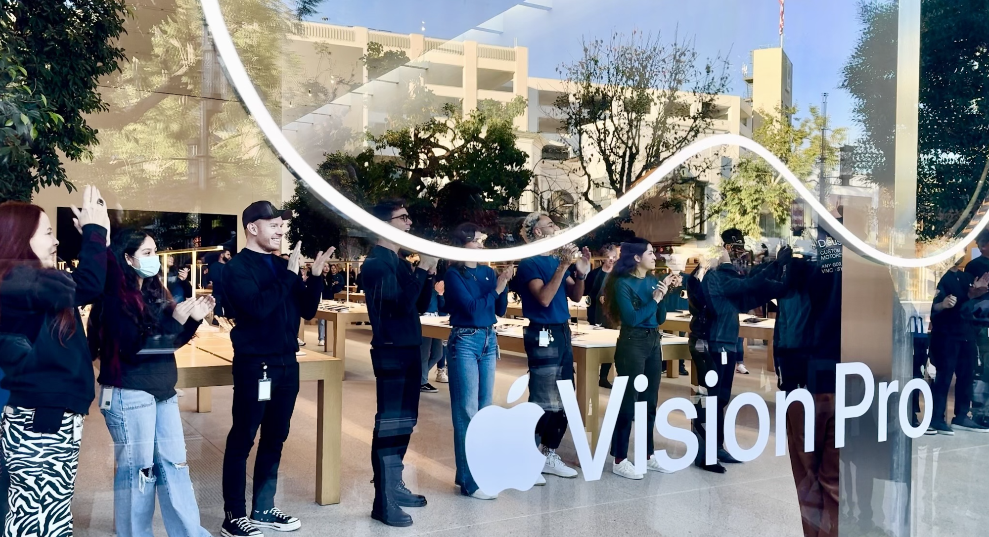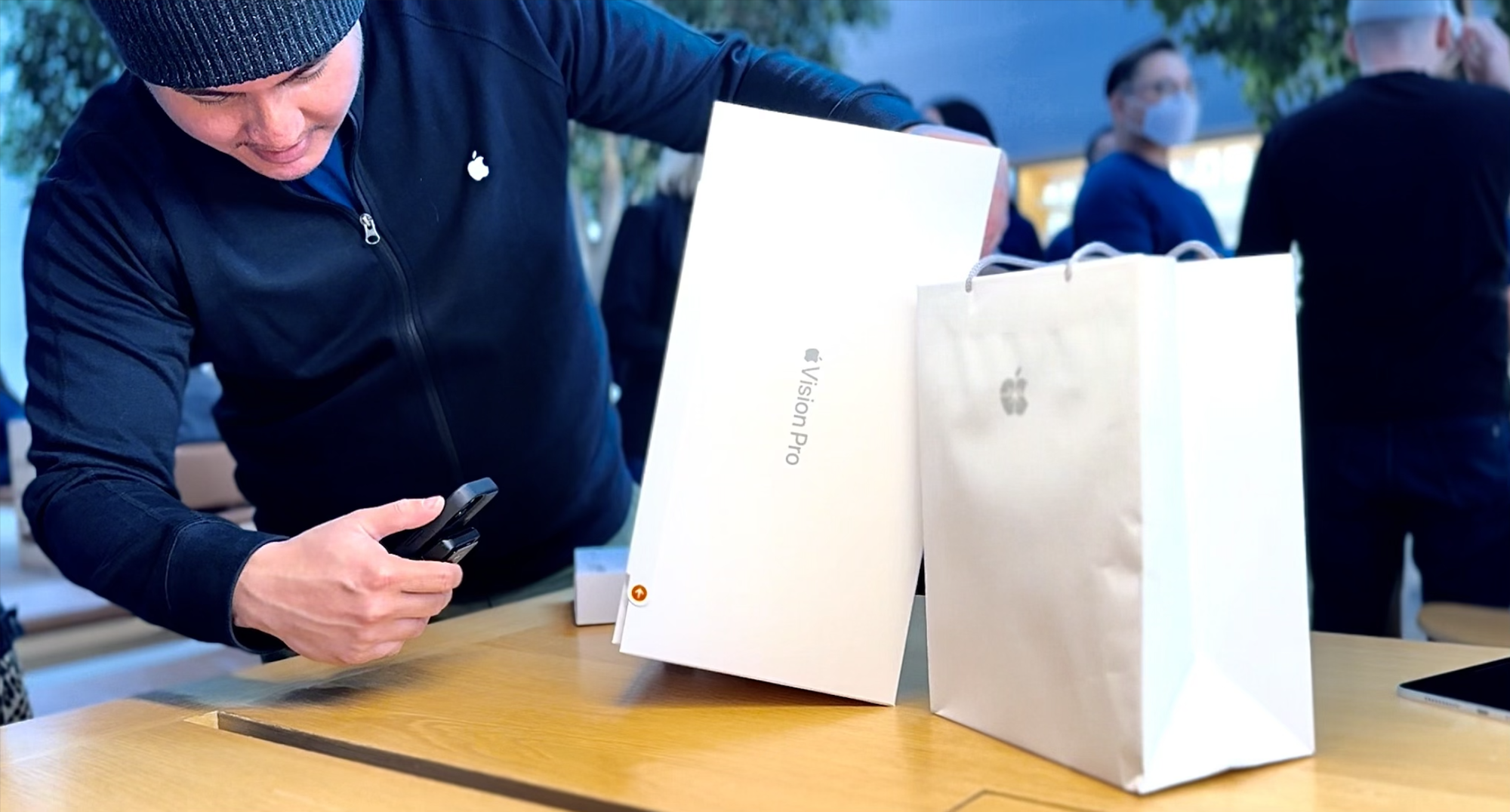 苹果员工一个接一个地带进每个购物者,就像他们在走婚礼通道一样。顾客有两个选择:他们可以立即购买设备,或者花20分钟进行演示,了解Vision Pro的使用方法,并测试他们预先选择的适合度。