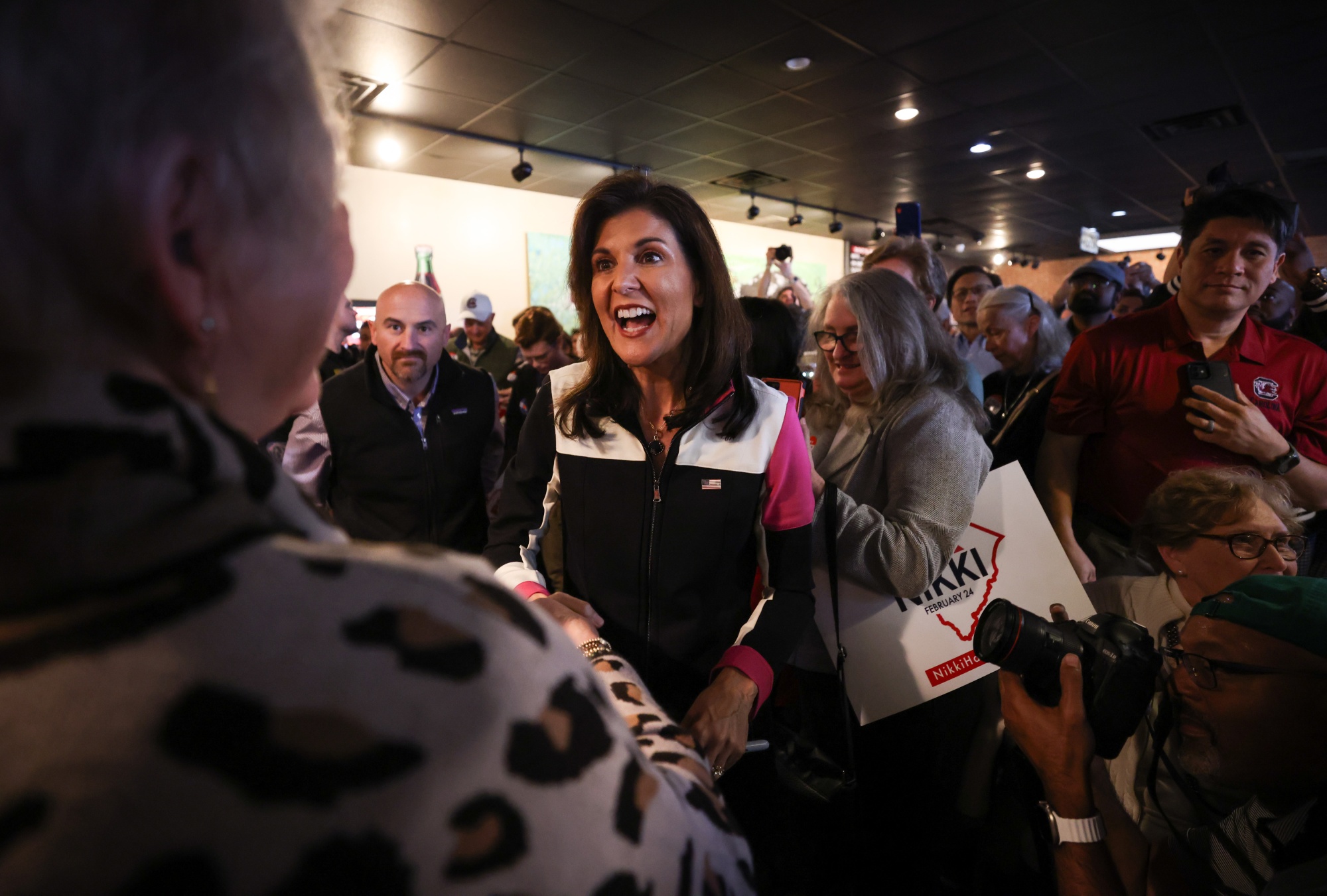 尼基·黑利(Nikki Haley)在南卡罗来纳州哥伦比亚市的一次竞选活动中发表讲话,日期为2月1日。