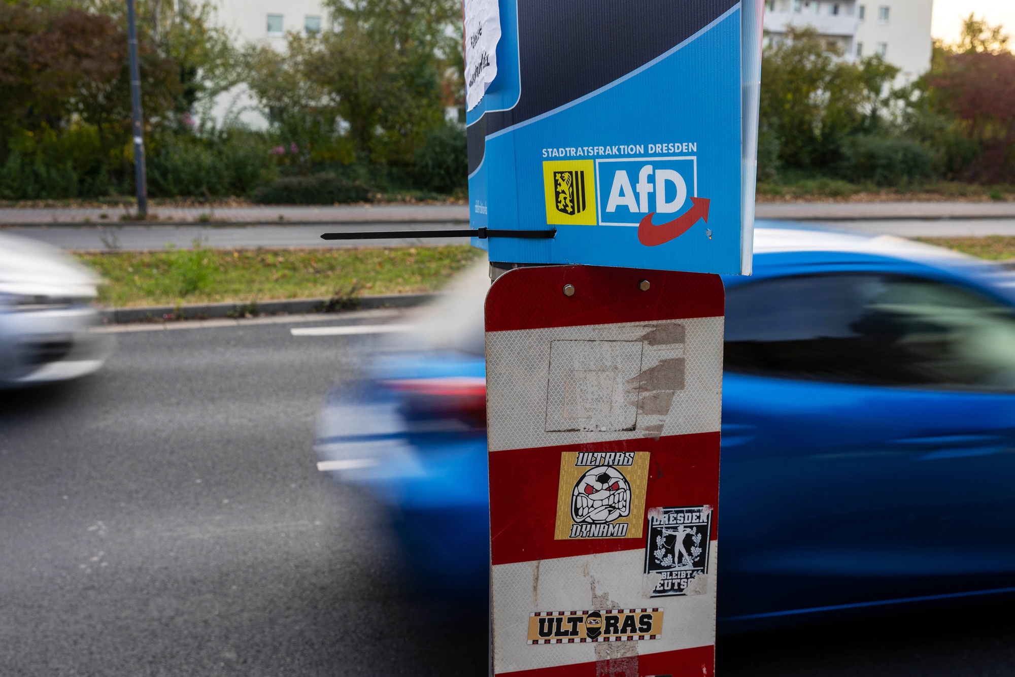 德累斯顿的AfD党广告。摄影师:Krisztian Bocsi/Bloomberg一些同事预计,Scholz 的领导地位在九月份后将会达到高潮,届时极右翼的德国另类选择党将在三个地区选举中取得第一名。这些同事匿名分享了他们的观点,就像其他为本文向彭博社发表言论的人一样。