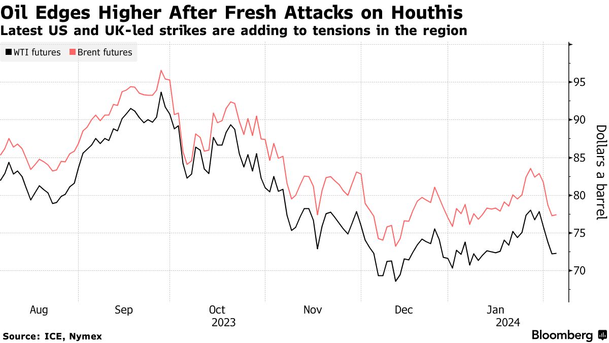 随着美国誓言对伊朗军队和代理人进行更多打击,油价上涨,而胡塞武装承诺对周末的轰炸进行报复。
