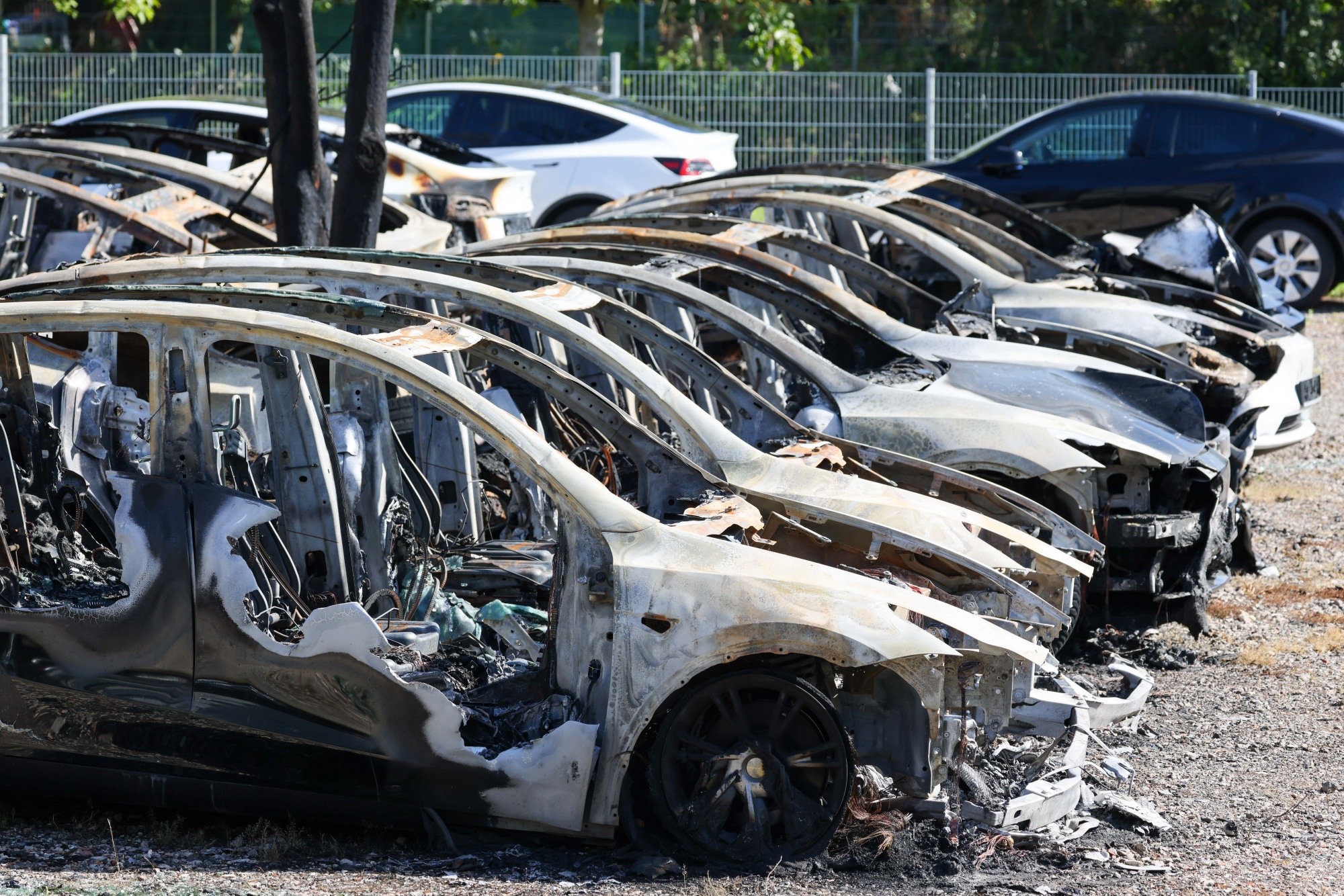 2023年德国停车场发生火灾后的烧毁特斯拉。