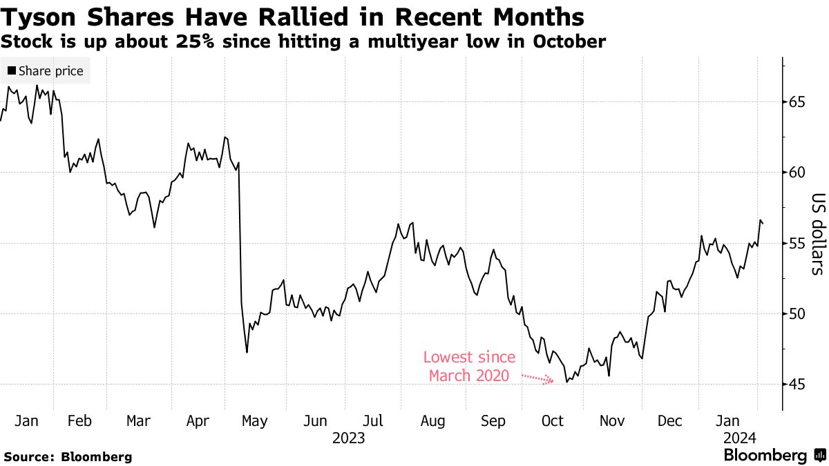 约翰·泰森摄影师:Leigh Vogel/Getty Images for Concordia Summit泰森一直在收获其在2023年采取的“战略举措”的好处,包括关闭一些鸡肉工厂,以及市场上供需动态的改善,该公司还利用了猪肉业务的更好利润,这使得增加产量更经济,他补充说。