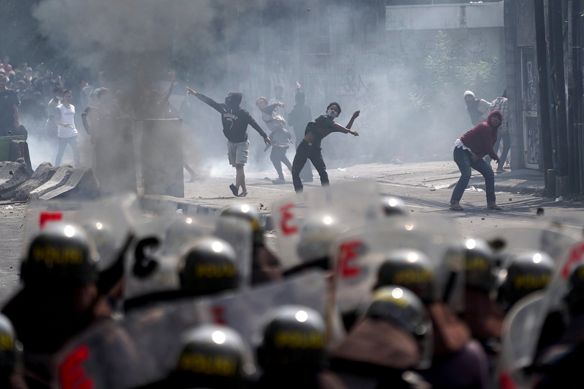 示威者在雅加达与警察发生冲突,抗议2019年选举官方计票结果宣布佐科·维多多为获胜者。摄影师:迪马斯·阿迪安/彭博社对于丽卡来说,投票支持普拉博沃也是继续佐科维的经济政策的最佳选择,这样印度尼西亚有朝一日可以“变得和美国一样强大”。