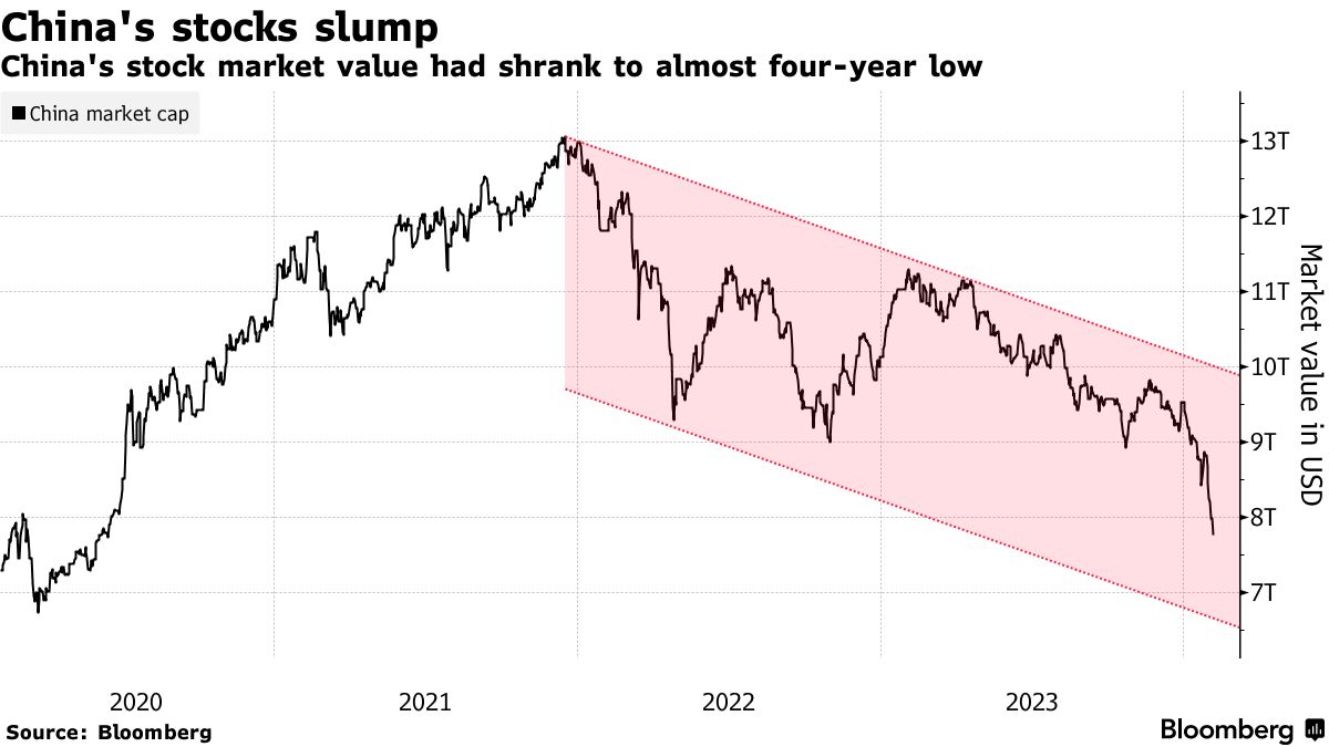 此举凸显了中国当局面临的越来越大的压力,他们需要制止股市的暴跌,因为过去几个月的零星措施未能提振投资者情绪。自2021年股市达到峰值以来,中国和香港股市已经蒸发了约7万亿美元的市值。