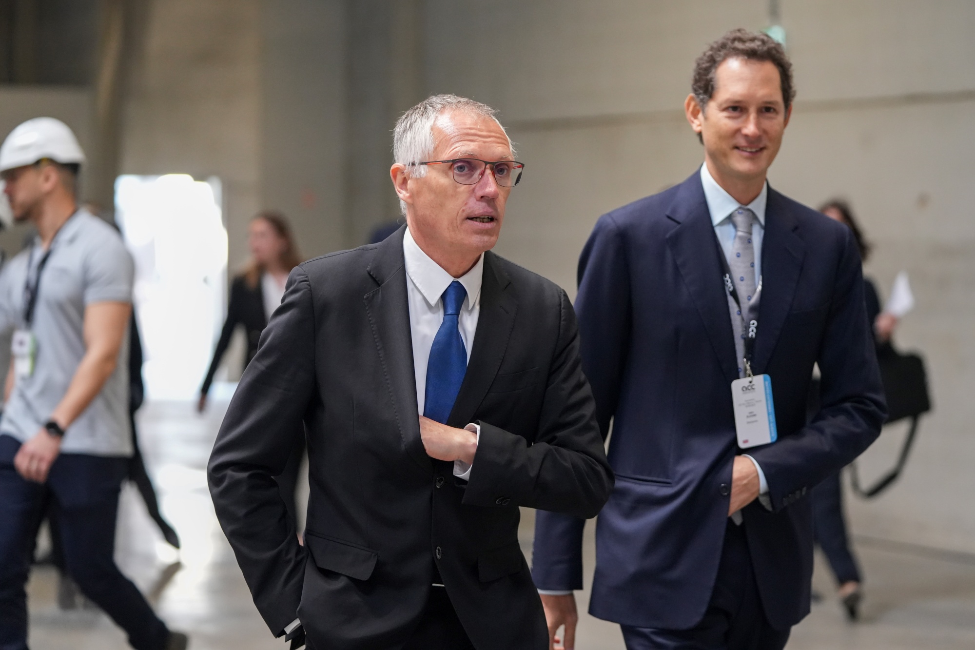 斯泰兰蒂斯首席执行官卡洛斯·塔瓦雷斯,中间,和主席约翰·埃尔坎。摄影师:内森·莱恩/彭博社公司通常不愿意通过否认他们正在考虑收购来回应媒体报道。因为一旦他们这样做了,就得每次都这样做。但有时,媒体的关注和政治利益 无法被忽视。周一就是这样的时候:斯泰兰蒂斯主席约翰·埃尔坎发表声明称公司专注于自身业务,不考虑与其他制造商合并的计划。这位阿涅利家族的继承人试图 平息意外猜测,包括与法国雷诺的合并。这些报道是由斯泰兰蒂斯首席执行官卡洛斯·塔瓦雷斯上周在彭博社阿尔贝蒂娜·托索利的一小时采访引发的。欲了解更多,请订阅彭博社的 交易简报。