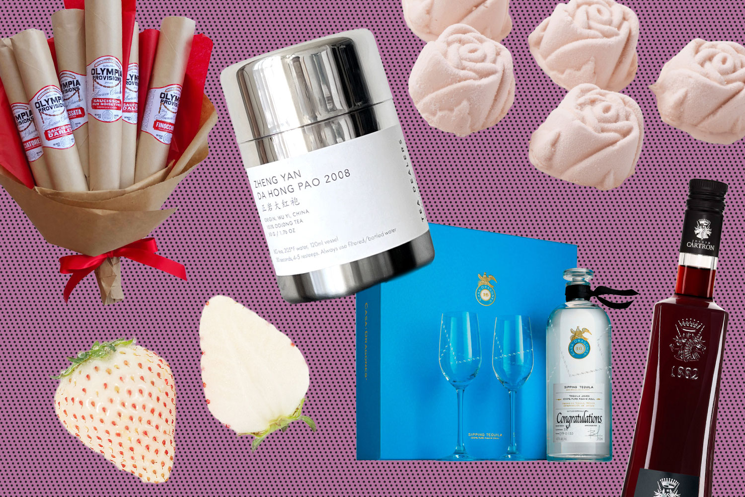 例如,如果你正在寻找一份说“我爱你”的非传统礼物,豪华龙舌兰酿酒商Casa Dragones有一个主意:你可以送一瓶个性化的Joven,这是一种由银色未陈酿龙舌兰和五年额外陈酿混合而成的酒,上面印有这些话或其他信息。还有无瑕疵、丝滑甜美的直接从日本进口的草莓,以及来自中国最负盛名的茶大师之一的一种优雅、杏仁和玫瑰风味的乌龙茶。以下是一些美味的礼物,展现了一些超越(心形)盒子思维。它们都可以通过邮购获得。
