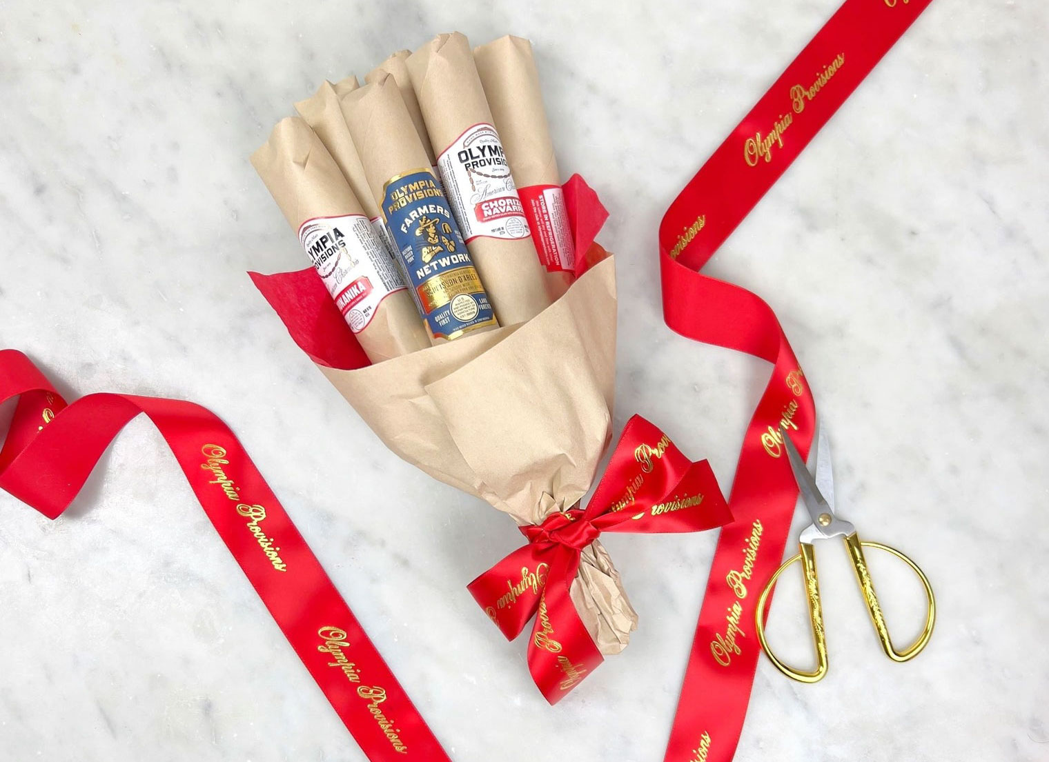 这束莎拉米可能比你通常送的鲜花更持久,来自俄勒冈州波特兰著名餐厅和肉类加工商 Olympia Provisions。由该品牌的“首席腌肉师”埃利亚斯·开罗(Elias Cairo)打造,这些无硝酸盐、无抗生素的猪肉小吃——每种口味都不同——采用各种欧洲风格制作,包括微微带有香料的烟熏西班牙香肠和口感温和、加有榛子的法式榛子香肠。虽然每束都不尽相同——他们会寄送一组不断更换的腌制肉类——但所有组合都美味无比。售价100美元