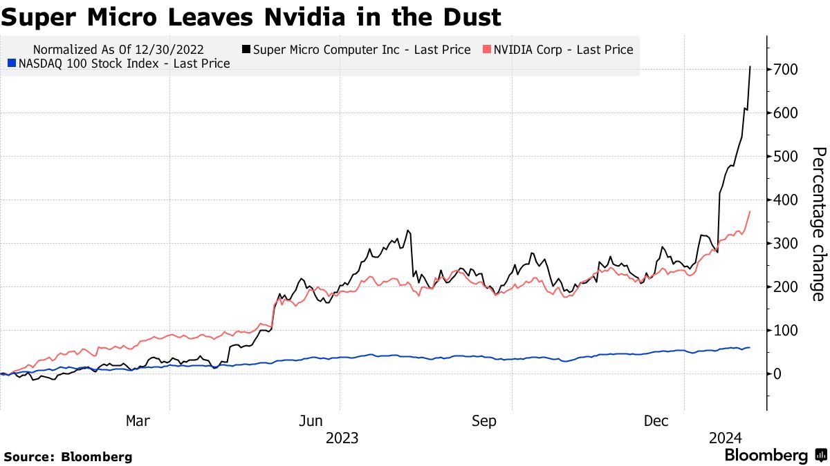 超微(SMCI)股价上涨700%,在人工智能狂潮中超过了英伟达-彭博社