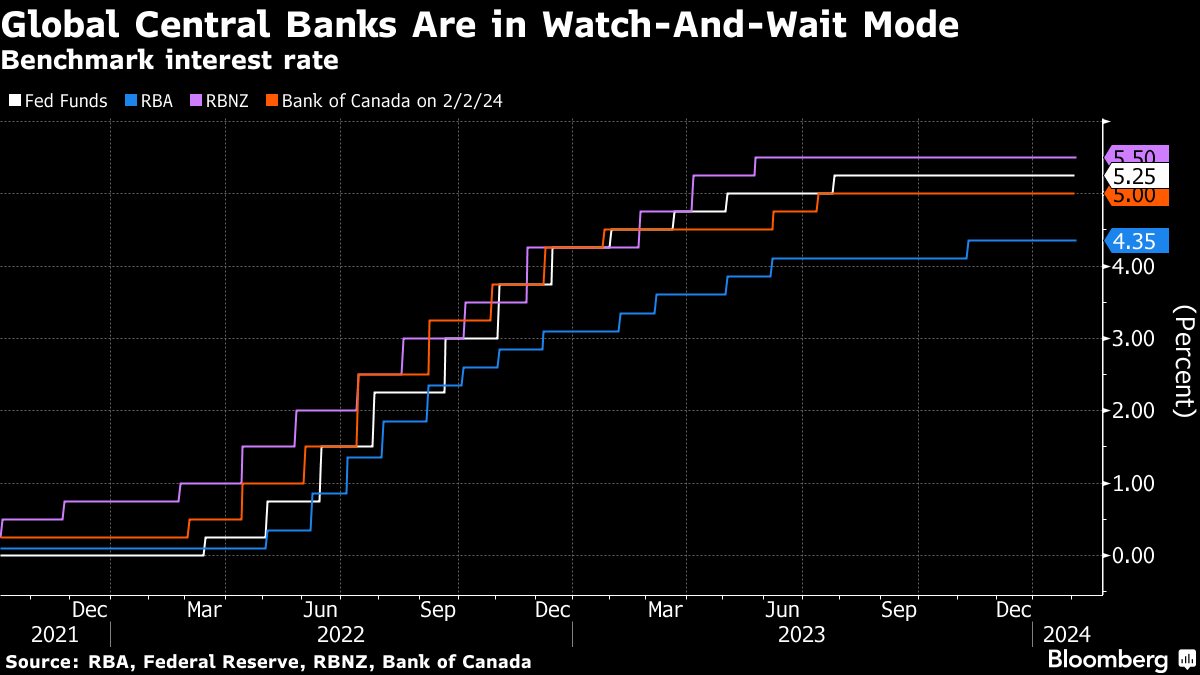 澳大利亚央行将利率维持在12年来的高位,并暗示进一步收紧仍有可能。储备银行昨天将现金利率维持在4.35%,并在会后声明中表示“不能排除进一步加息”,与全球同行一道抵制了对于近期宽松预期。