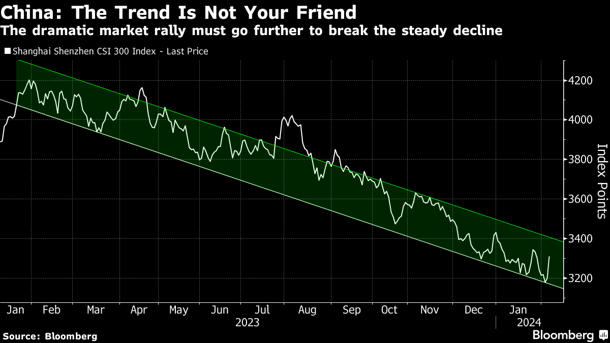死猫也应受到尊重。中国股市刚刚经历了一场空前的涨势,但在经历了长时间的下跌后,它看起来像是一次“死猫反弹” —— 这是华尔街的一个迷人术语,基于这样一个事实:即使是僵硬的猫尸体,如果你把它扔得够远,它也会反弹一点点(我们只能推测一下从五层楼上)。但仍值得看看这是如何发生的,以及是什么推动了这些变化。