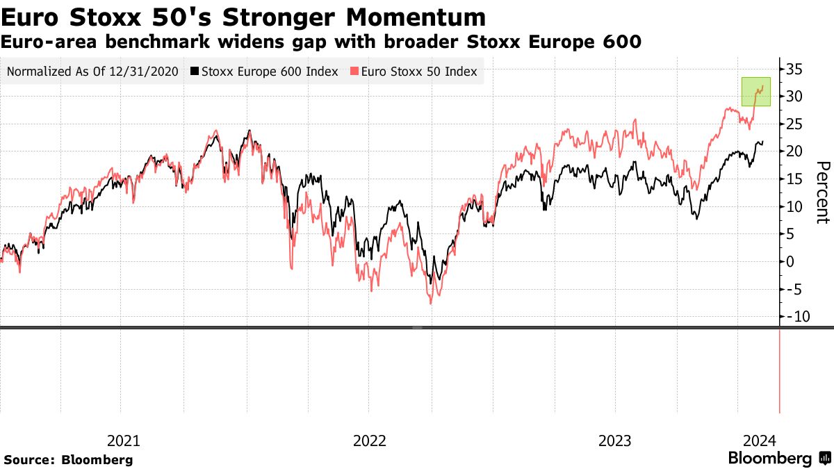 该地区股市在年初取得了积极的开局,延续了2023年年底的涨势。这使得主要区域基准指数距离创纪录高点约1.4%。