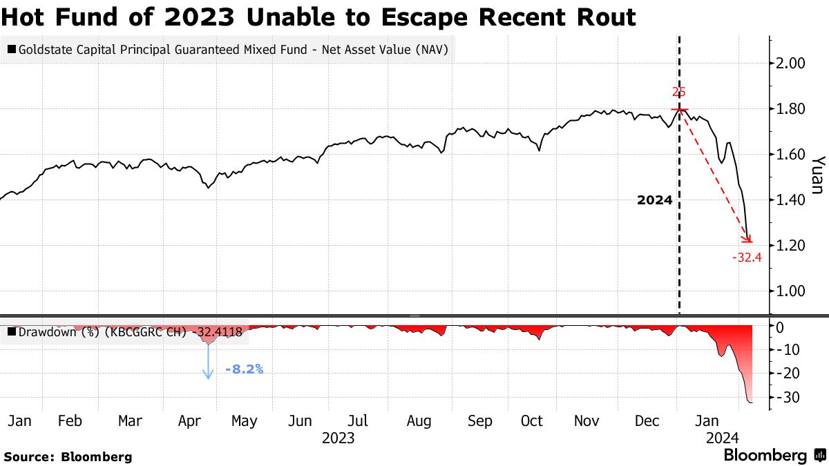 Goldstate Capital Principal Guaranteed Mixed Fund在2023年几乎实现了29%的回报,逆市而行,抵御了内地基准CSI 300指数的下跌,但今年迄今已下跌32%。它的大部分持仓是小盘股票,而这一类股票最近遭受了严重的损失。
