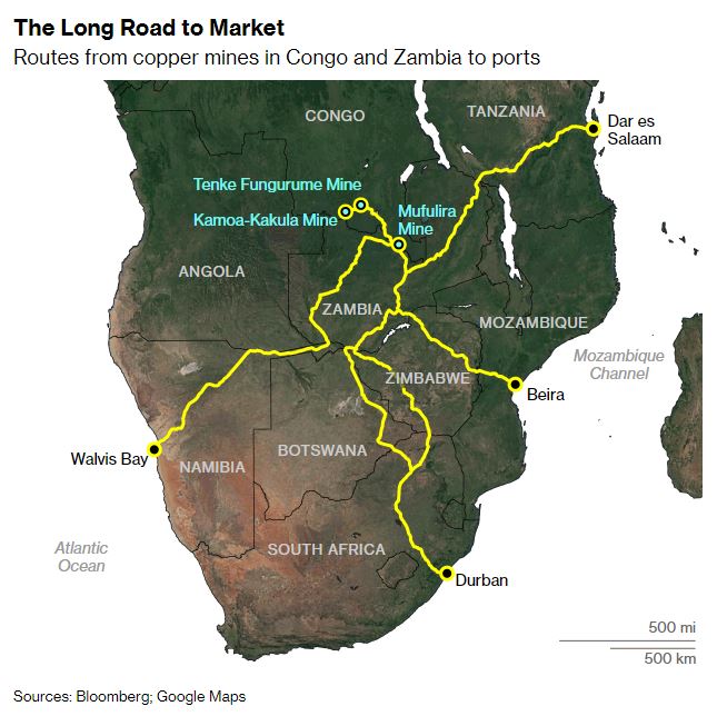 在横跨刚果和赞比亚的铜带开采的矿业公司传统上将他们的金属通过卡车运输到南非的德班港。这段旅程可能需要一个多月的时间。洛比托承诺将把旅行时间缩短到不到一周,到达一个更靠近美国和欧盟的大西洋港口。这两个大国都在财政上支持该项目,作为他们努力抵制中国在该地区的重大影响力的一部分。