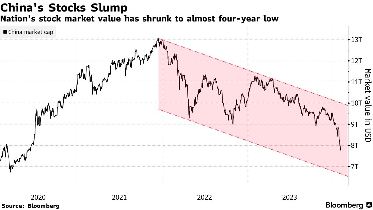 中国内地股市从2021年的高点以来已经蒸发了约5万亿美元的市值,监管机构的一系列举措迄今未能提振信心。政府更换了证监会主席,引发了对采取更有力措施缓解下跌的希望。
