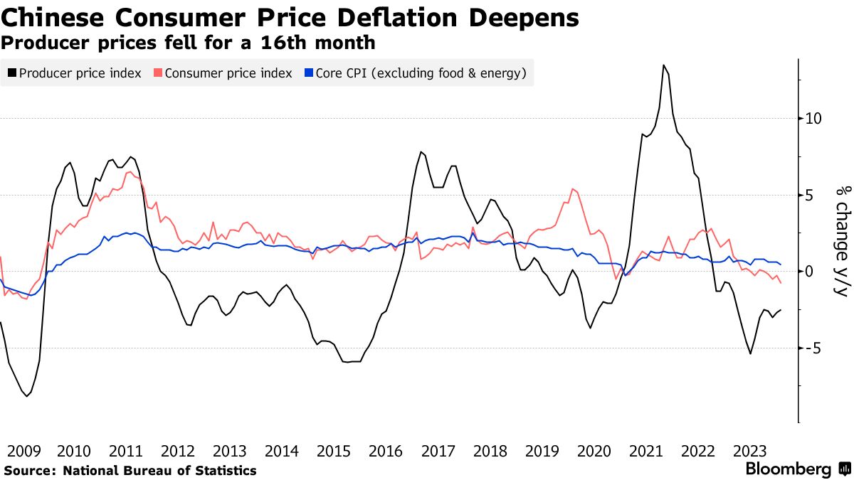 中国消费者价格下降速度创2009年以来最快-彭博社