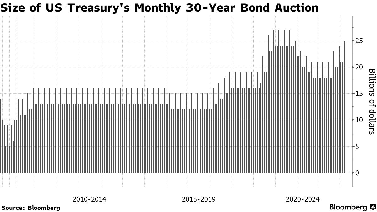 美国政府以低于预期的收益率出售了250亿美元的30年期债券,缓解了投资者对长期债务需求的担忧。