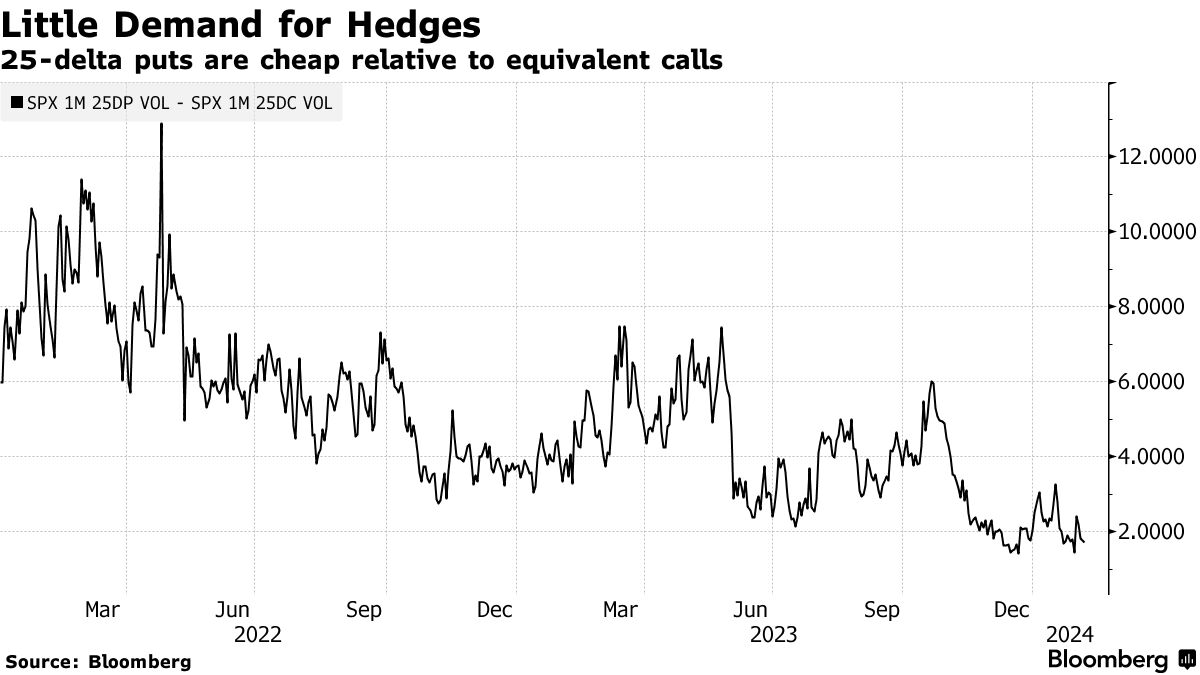 根据Susquehanna International Group指出的数据,3个月期10角期权的隐含波动率与40角期权的隐含波动率之间的溢价处于十年来的最高水平。这种关系表明,对暗示更高收益的认购期权的需求增加,相对于那些寻求更温和进展的人来说。