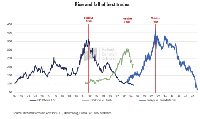 Richard Bernstein来自Richard Bernstein Associates(与Alliance Bernstein无关)指出了一系列长期趋势,当时似乎势不可挡,但完全逆转了。这种不平衡很少持续: